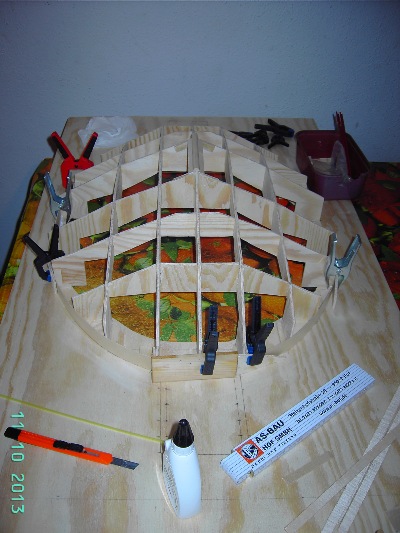 Der Grundrahmen auf fertiger Höhe. Hier werden jetzt noch "Spanten" montiert, um verschiedene Ebenen und Übergänge zu erstellen.
